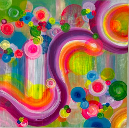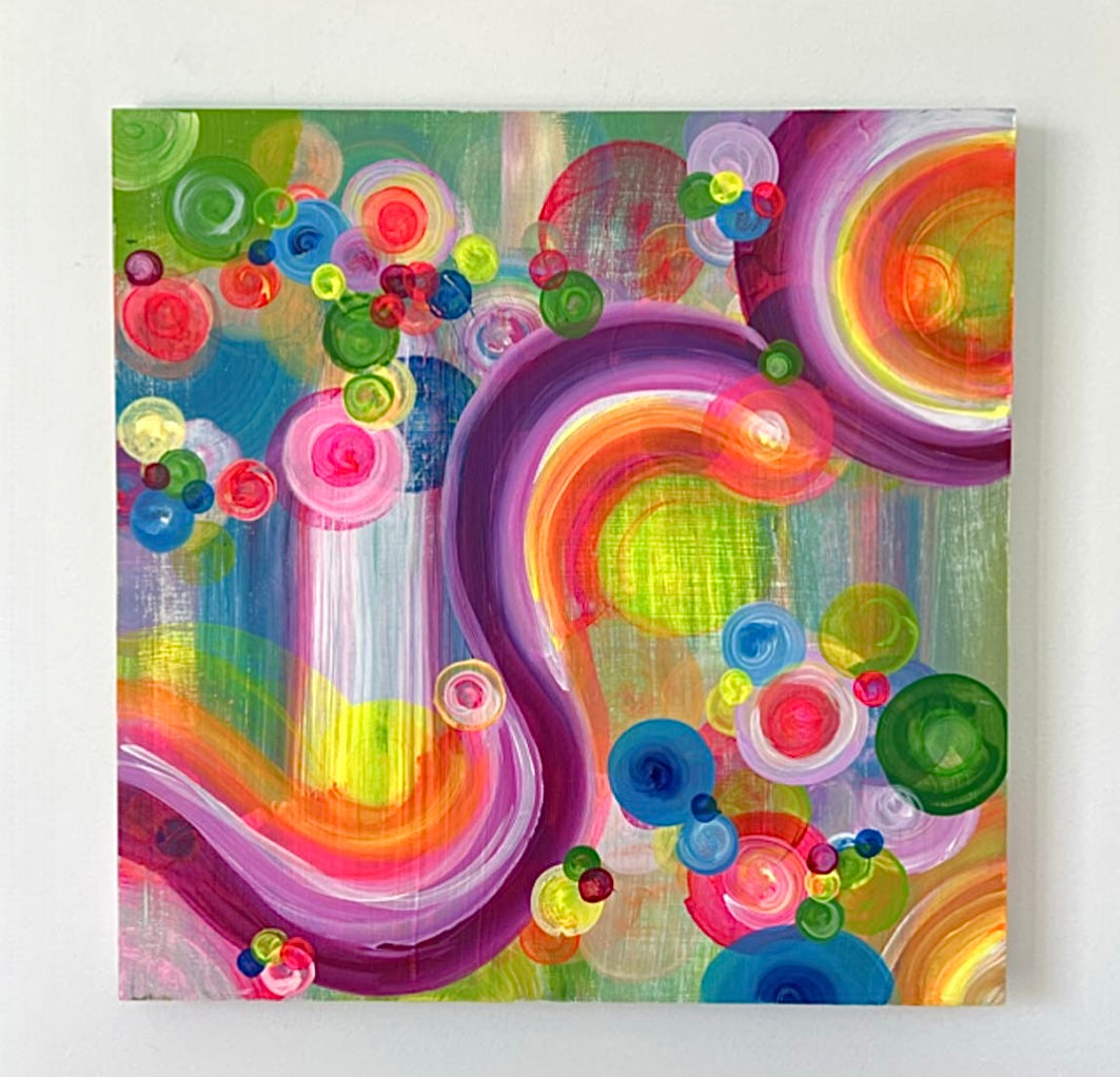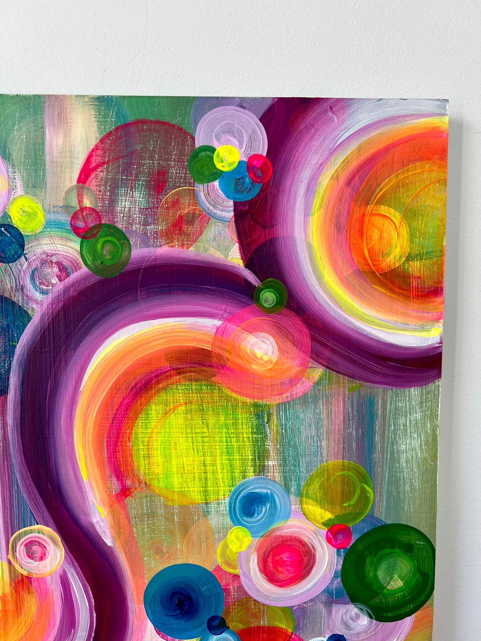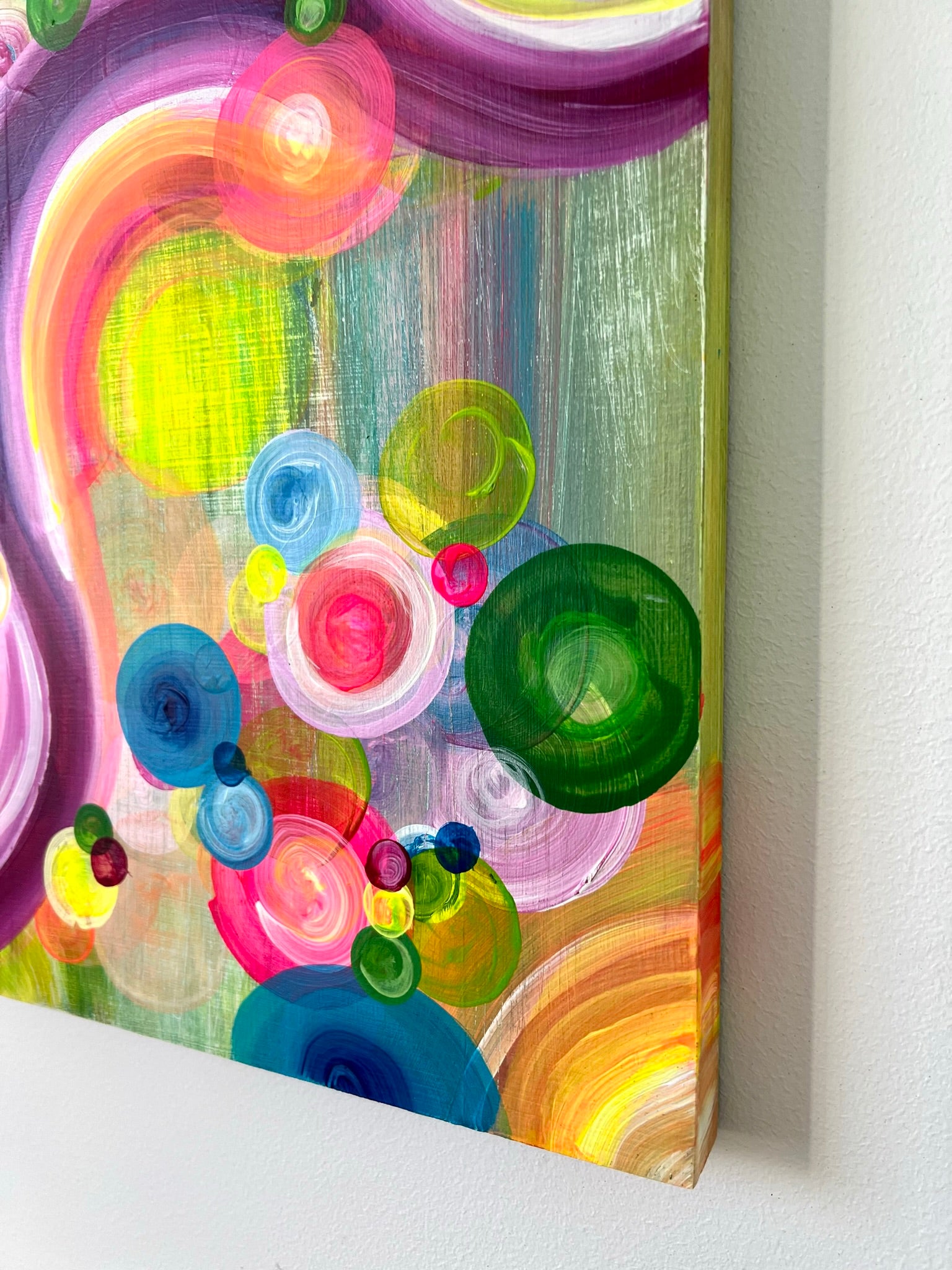 This unique acrylic painting is made on a primed cradled wood panel, the sides are painted and it is unframed