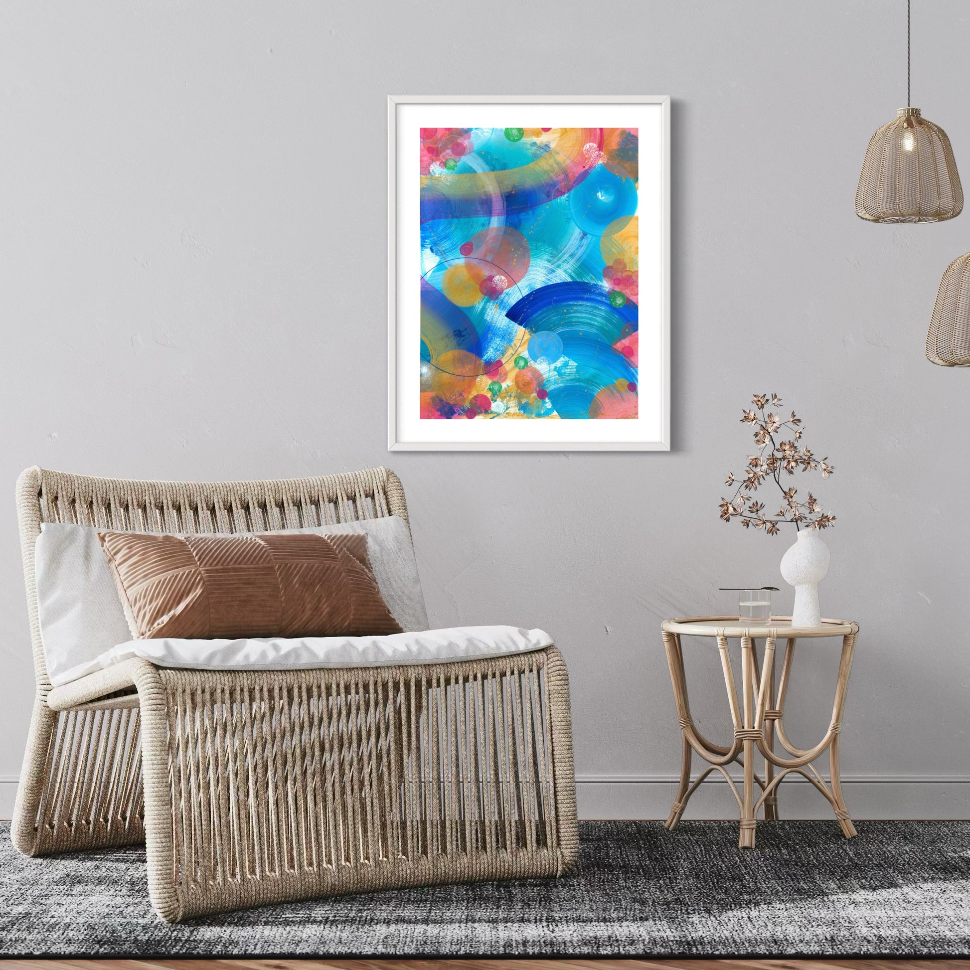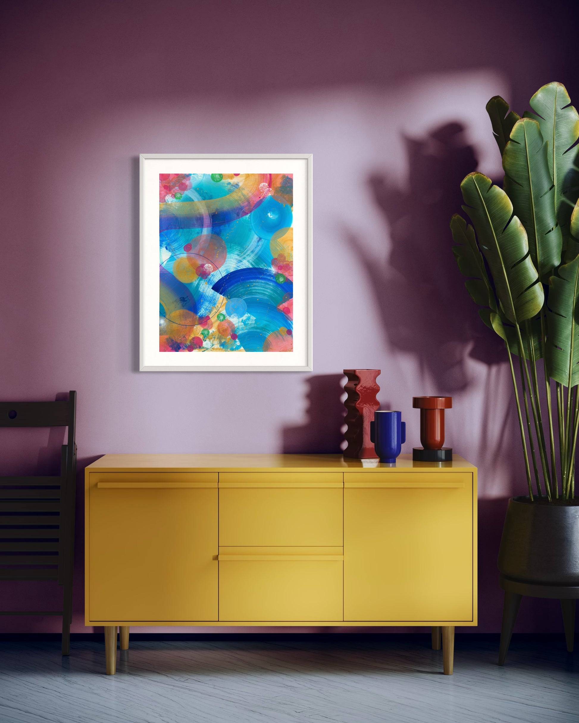 Discover the vibrant energy of Colorful Currents. In this work I explore the dance of colors and lights. The swirling circles and intertwining hues evoke a sense of cosmic wonder to me. Immerse yourself in this captivating piece and find your own personal interpretation. Let 'Colorful Currents' ignite your imagination and evoke a unique emotional response.